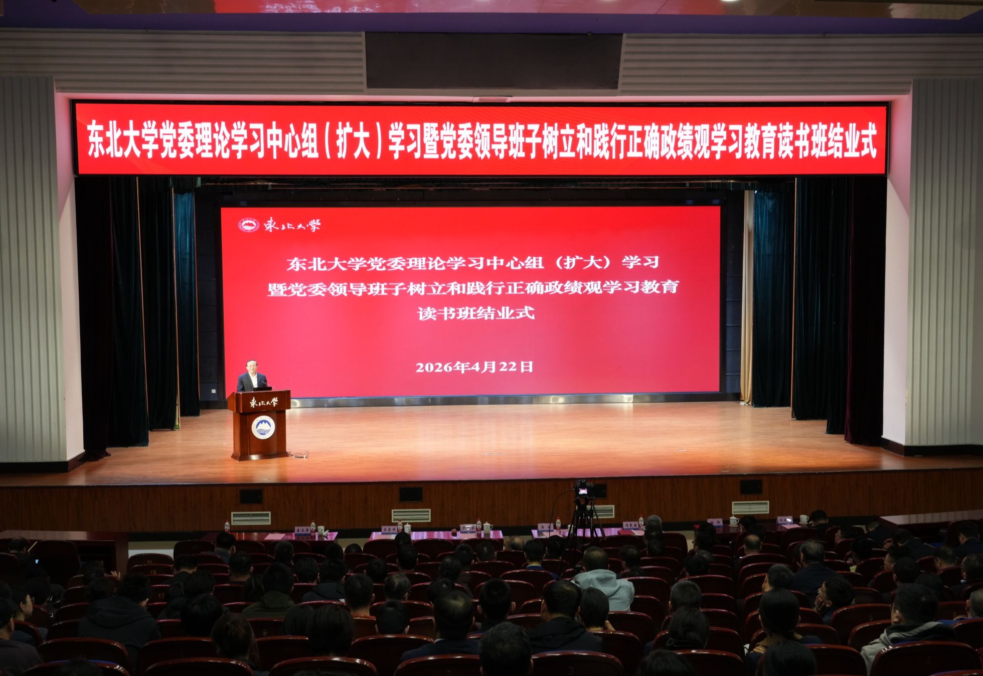 4月22日,东北大学党委理论学习中心组(扩大)学习暨党委领导班子学习教育读书班结业式在南湖校区汉卿会堂蔡冠深报告厅举行,中国科学院院士、北京大学严纯华教授作专题辅导报告。校党委书记郭海主持会议。学校领导班子成员、学术委员会委员、教学指导委员会委员,学习教育工作专班成员、科级以上干部参加会议,浑南校区、秦皇岛分校领导干部在分会场参会。