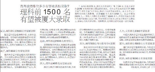 厦大:理科排位1500左右有望被录