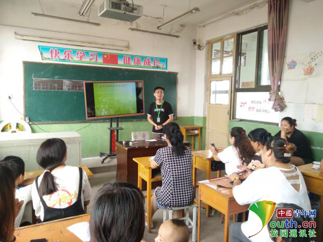 图为支教队长费淼为家长上家庭教育课。中国青年网通讯员 费淼 提供