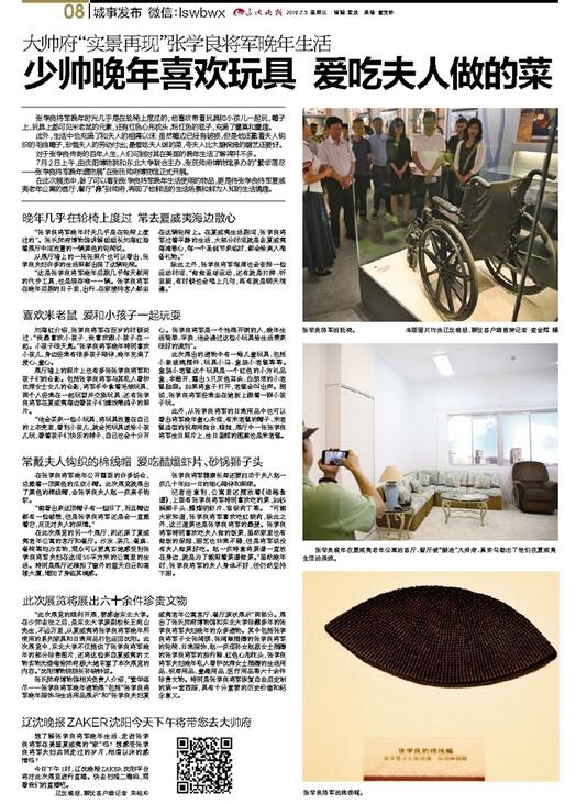 7月2日上午,由沈阳博物院和东北大学联合主办、张氏帅府博物馆承办的“繁华落尽——张学良将军晚年遗物展”在张氏帅府博物馆正式开展。