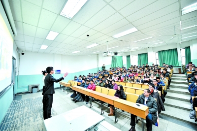东北大学从2014年起推出“与信仰对话——马克思主义经典著作诵读会”,引导学生在领略经典中认识客观真理、追寻人生价值。图为东北大学思政课“品读经典”课堂。新华社发 新闻来源 《光明日报》2019年6月11日