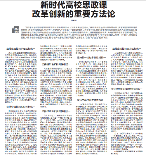 总之,习近平总书记关于“八个相统一”的重要论述,不是方法,而是关于方法的方法,即高校思政课教学的方法论。只要我们思政课教师做到政治强、情怀深、思维新、视野广、自律严、人格正,就一定能够创造性做到这“八个统一”,就一定不断增强思想性、理论性和亲和力、针对性,从而办好高校思政课。