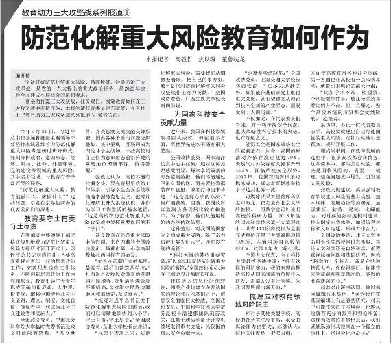 “防范化解重大风险,教育能做什么,应做什么?”这些问题,引发在京参加两会的代表委员们的深思。