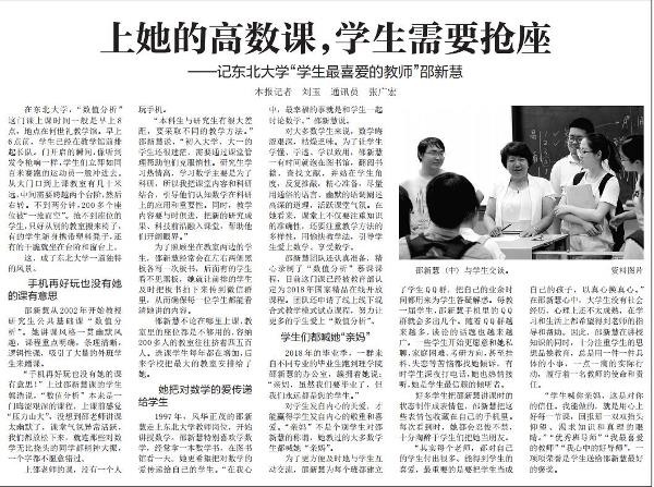 “手机再好玩也没有她的课有意思!”上过邵新慧课的学生郭浩说,“数值分析”本来是一门晦涩艰深的课程,上课前感觉“压力山大”,没想到邵老师讲课太幽默了,课堂气氛异常活跃,我们都放松下来,就连那些对数学无比挠头的同学都精神大振,一个字都不愿意错过。