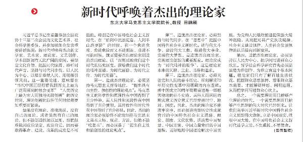 总之,一个需要理论而且能够产生理论的时代,一个需要思想而且能够产生思想的伟大时代已经到来。让我们高举习近平新时代中国特色社会主义思想伟大旗帜,立足中国现实,植根中国大地,在中国特色社会主义新时代述学立论,不负重托、不辱使命。 (岳雨整理)