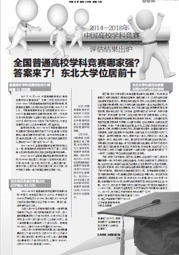2月23日,沈阳晚报、沈报融媒记者了解到,本次共发布12个高校学科竞赛评估结果榜单。东北大学在2014—2018年全国普通高校竞赛评估结果(本科)TOP300排名中位居第九,在2014—2018年理工类本科院校学科竞赛评估结果(本科)TOP20排名中位居第六。