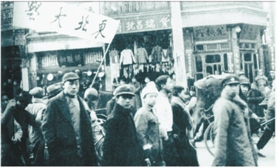 在一二·九运动中,东大学生始终走在游行队伍的最前列。