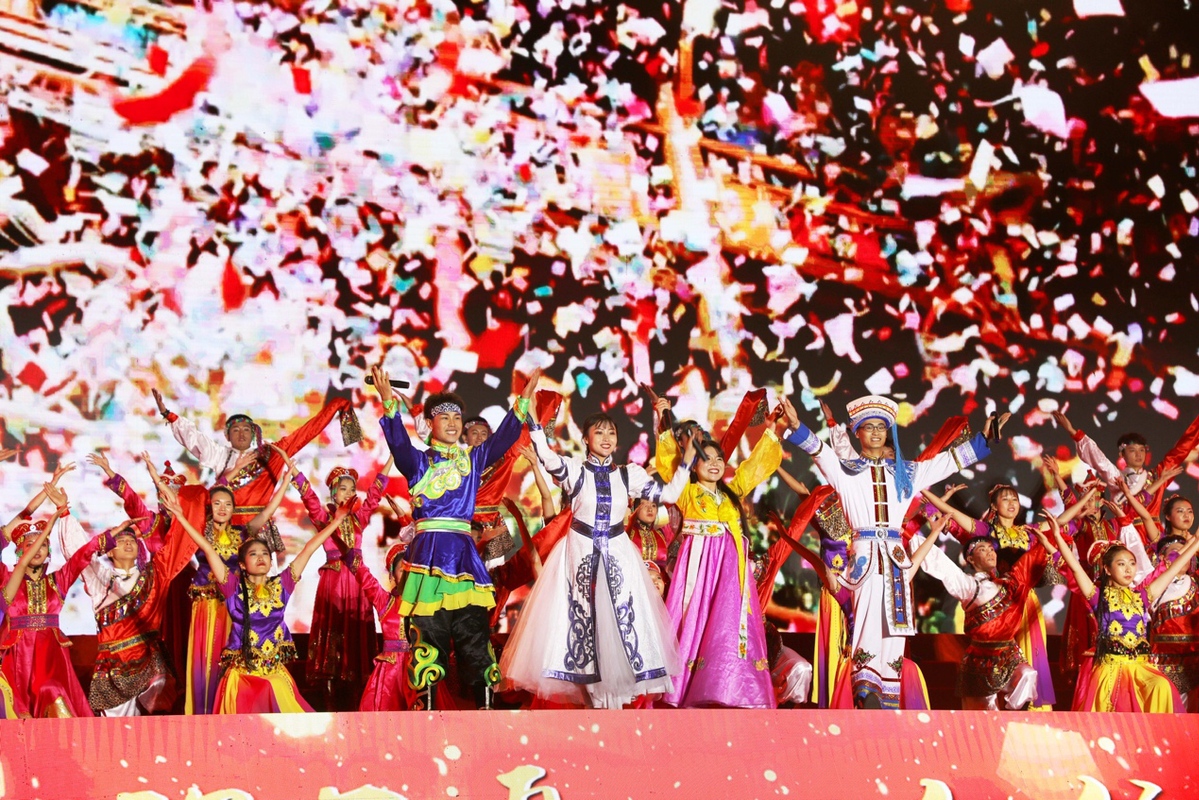无论我走到哪里,都流出一首赞歌,我歌唱每一座高山,我歌唱每一条河……”对祖国的热爱之情充溢全场,传达着大家对祖国未来美好的期待。