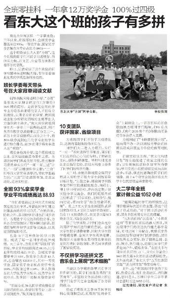 这个班级被东大人称“方班”,这个班级的同学们不仅学习成绩好、科研实力强,在文艺、公益等方面都有着不俗的表现。