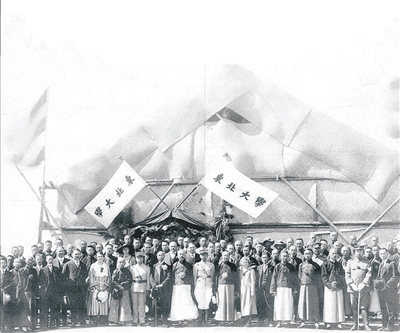 (一九二三年七月,东北大学举行北陵校舍奠基仪式。)