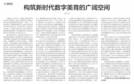 美育是审美教育、情操教育、心灵教育,也是丰富想象力和培养创新意识的教育。数字美育顺应了互联网时代的发展趋势,符合中小学生的认知现实和学习特点,有助于引导中小学生更好地感受自然之美,尊重生命之美和艺术之美,收获更多的人生幸福感。做好数字美育工作,用数字美育涵养更多的“美丽心灵”,以美育人,以文化人。
