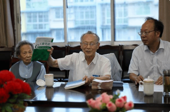 △谢绪恺与夫人翻看他创作的《高数笔谈》