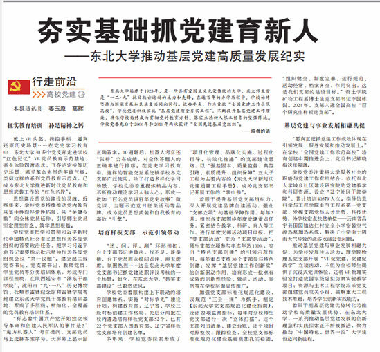 着眼于把基层党建优势转化为推动学校高质量发展优势,在东北大学,一系列推动基层党建发展的创新理念和实践探索正不断被激活,聚力推动“中国特色、世界一流”大学建设迈向新征程。