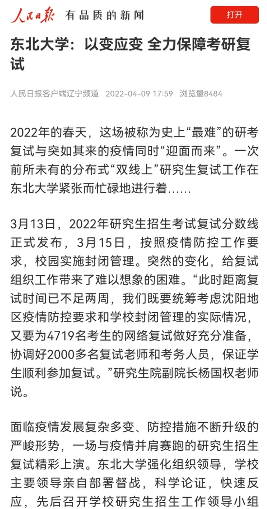 2022年的春天,这场被称为史上“最难”的研考复试与突如其来的疫情同时“迎面而来”。一次前所未有的分布式“双线上”研究生复试工作在东北大学紧张而忙碌地进行着……