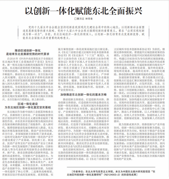 推动区域创新一体化是培育东北发展新优势的时代要求