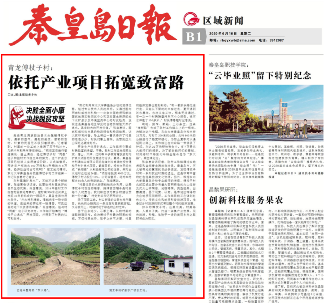 张彦惠告诉记者,驻村工作组通过实地考察和查阅青龙满族自治县、秦皇岛市、河北省等地的冀东抗日战争史记,发现傅杖子村有一系列抗战时期的遗址,这是非常丰富的红色经典旅游文化资源。另外,根据东北大学秦皇岛分校专业教师的考察,傅杖子村北部区域主要分布着大面积标准的火山熔岩及沉火山碎屑岩,地貌特殊,类型经典,出露清楚,易于观赏、研究,是本地区难得的火山地质观测场所。工作组目前正在谋划红色文化、传统文化和地质科普旅游项目,准备以乡村旅游的形式带动整个村的经济发展。