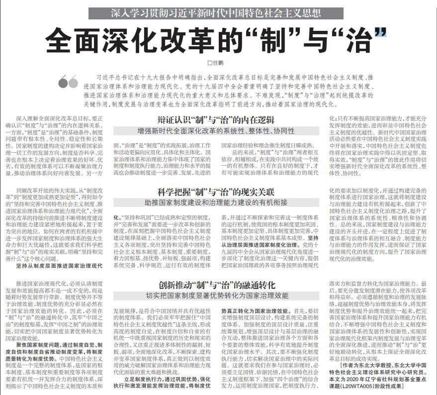 (作者任鹏为东北大学教授、东北大学中国特色社会主义理论体系研究中心研究员。本文为2020年辽宁省社科规划基金重点课题(L20WTA005)阶段性成果)