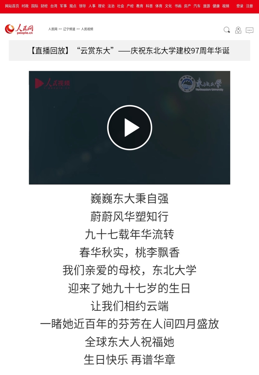 全球校友通过视频祝福的形式,献上对母校东北大学97岁的生日祝福。