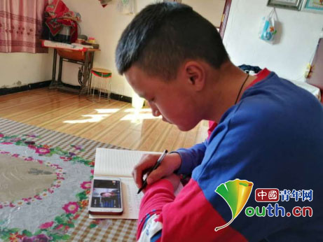 图为布尔津县中学生在家中通过手机观看团课。东北大学研究生支教团 供图