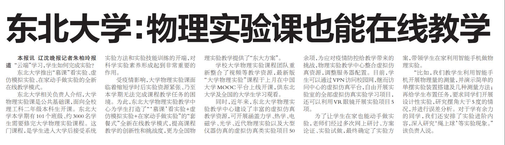 东北大学推出“慕课”看实验、虚仿模拟实验、在家动手做实验的全新在线教学模式。