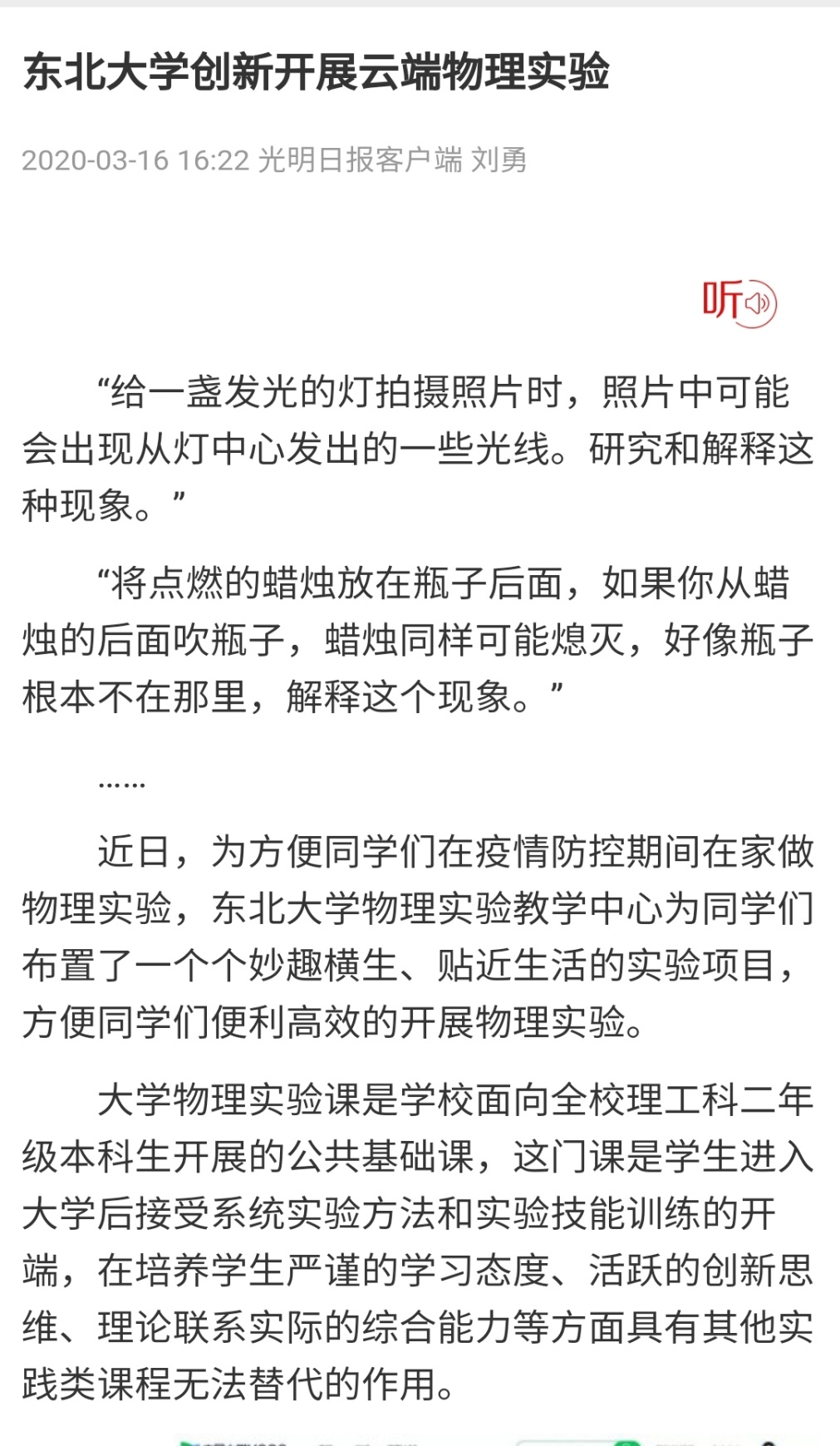 近日,为方便同学们在疫情防控期间在家做物理实验,东北大学物理实验教学中心为同学们布置了一个个妙趣横生、贴近生活的实验项目,方便同学们便利高效的开展物理实验。