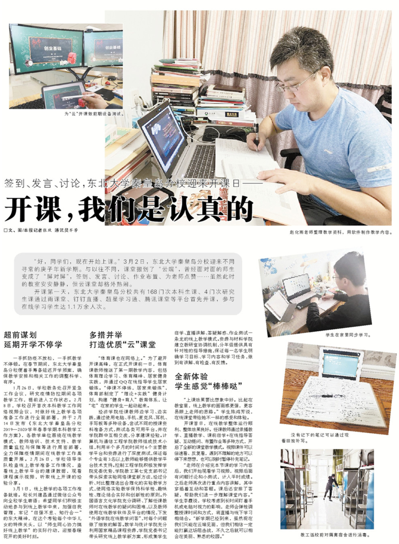 开课第一天,东北大学秦皇岛分校共有168门次本科生课、4门次研究生课通过雨课堂、钉钉直播、超星学习通、腾讯课堂等平台首先开课,参与在线学习学生达1.1万余人次。