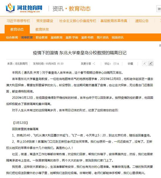 1、东北大学秦皇岛分校党委书记孙正林微信说:吉先生好!知道您和夫人已经回到秦皇岛并在指定宾馆隔离。有事需要学校做的,您尽管说,我们会全力以赴做好服务工作。期待着您和夫人早日回家!