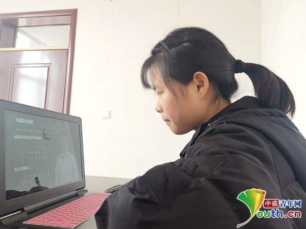 东北大学学生李珂珂在收看“云课堂”