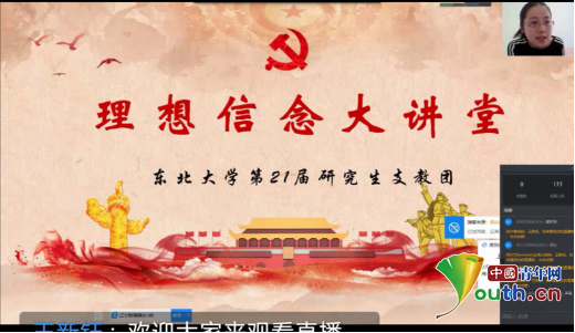 本期理想信念大讲堂邀请东北大学生命科学与健康学院2019级博士研究生郑少钦、北京大学马克思主义学院2019级硕士研究生李尚蓉(本科就读于东北大学),与同学们分享了自己的青春奋进故事并向其介绍了疫情期间高效学习的经验技巧。