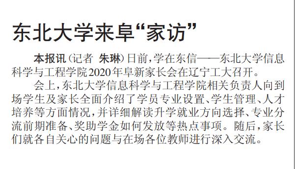 日前,学在东信 — —东北大学信息科学与工程学院2020年阜新家长会在辽宁工大召开。