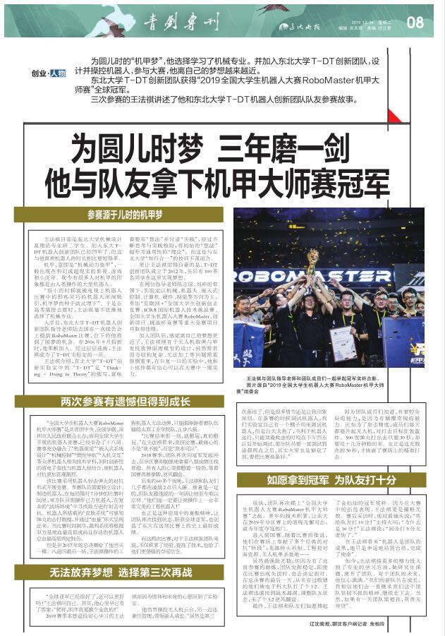 为圆儿时的“机甲梦”,他选择学习了机械专业。并加入东北大学T-DT创新团队,设计并操控机器人,参与大赛,他离自己的梦想越来越近。