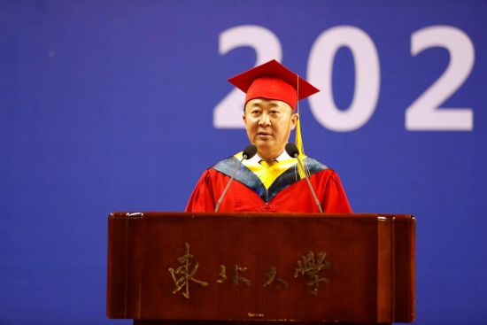 同学们,你们就读东北大学的这几年,正是学校“双一流”建设的关键时期。我们欣喜地看到,在全校师生员工的共同努力下,学校面貌正在发生深刻的变化,特别是刚刚过去的2019年,各项工作成果丰硕,捷报频传。这其中凝聚着老师们和同学们的智慧和汗水。你们是学校创新发展、特色发展、开放发展的参与者、推动者和见证者。你们把求实的精神融入到学习生涯中,将求索的脚印驻留在东大校园里。今天是你们学有所成的纪念日,更是未来旅程的新起点。我将与你们的导师一起,为大家拨苏正冠,祝福你们的未来更加广阔!