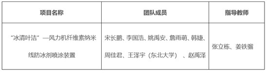 我校本科生王泽宇,身份证:22020420********1X,专业:材料科学与工程(中外合作办学),学号:20224318,受邀加入东北电力大学国赛作品《“冰清叶洁”—风力机纤维素纳米线防冰剂喷涂装置》(作品信息附后),参与了防冰材料的研究与喷嘴喷涂调整等开发工作。
