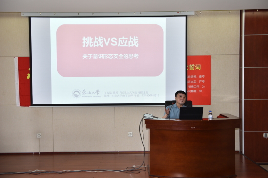 丁义浩从什么是意识形态、意识形态领域形势分析,意识形态领域动向风险,提高意识形态工作能力等四个方面,对新时期意识形态工作,尤其是高校意识形态工作的识别、预防和化解作了详细的说明。
