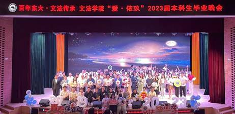 6月15日晚,文法学院“爱・依玖”2023届本科生毕业晚会在浑南校区图书馆报告厅举行。东北大学学生工作处处长马天威,团委副书记刘锃一,文法学院院长张雷,党委书记隋永强,副院长杜宝贵,党委副书记、纪委书记孙宏伟,党委副书记、副院长(兼)夏风云,副院长李丹,教师代表,2023届全体本科毕业生参加晚会。