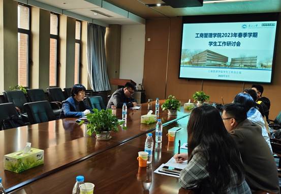 3月22日,工商管理学院在文管学馆B306室召开2023年春季学期学生工作研讨会。学院党委书记任丽,党委副书记、副院长(兼)严立宁及学生工作办公室全体成员参加会议。