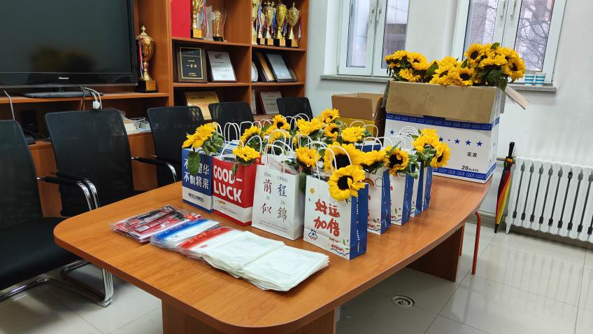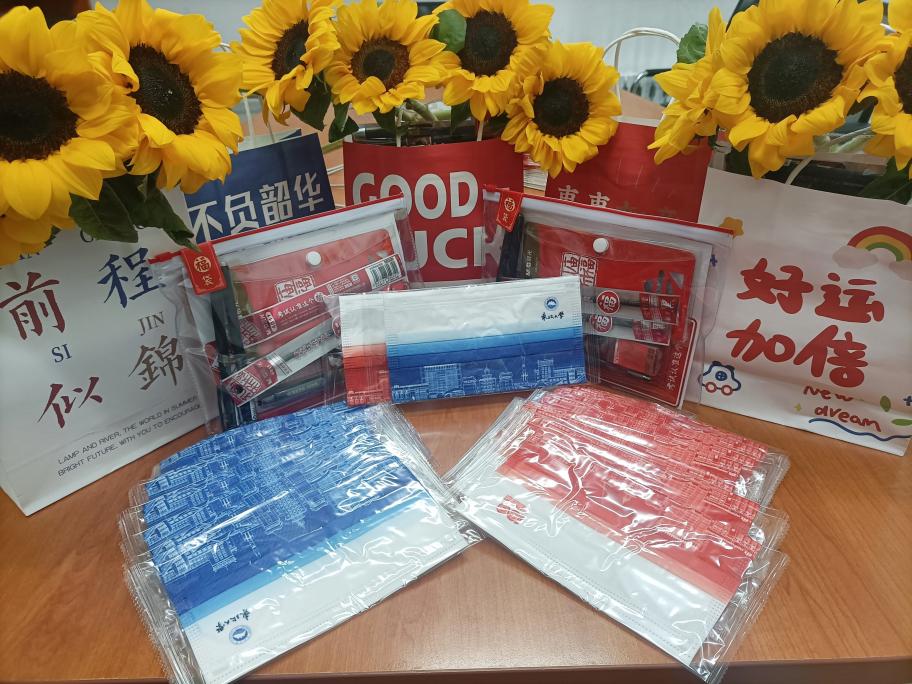 学院还为考研学子们精心准备了“一举夺魁”考研福袋,福袋中包含考试所需的文具用品、东大专属口罩、向日葵等,每一件礼物都承载着美好的寓意,福袋上印有全院师生的祝福语,寄予了对考生无限的鼓励和期望,祝福考研学子们一战成“硕”,不负夜以继日的努力与奋斗。