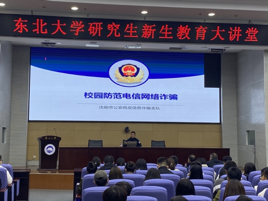 沈阳市公安局王峰警官为全体研究生新生作题为“防范电信网络诈骗”的专题报告。王峰基于“反诈骗”的丰富经验,从电信网络诈骗危害性和手段类型、受骗者心理动因、如何防骗等方面展开讲授,通过列举各种类型的诈骗案件,从不同角度讲述了防骗知识,让研究生能够更加直观了解网络诈骗的手段,增强对网络诈骗的识别和防护能力。