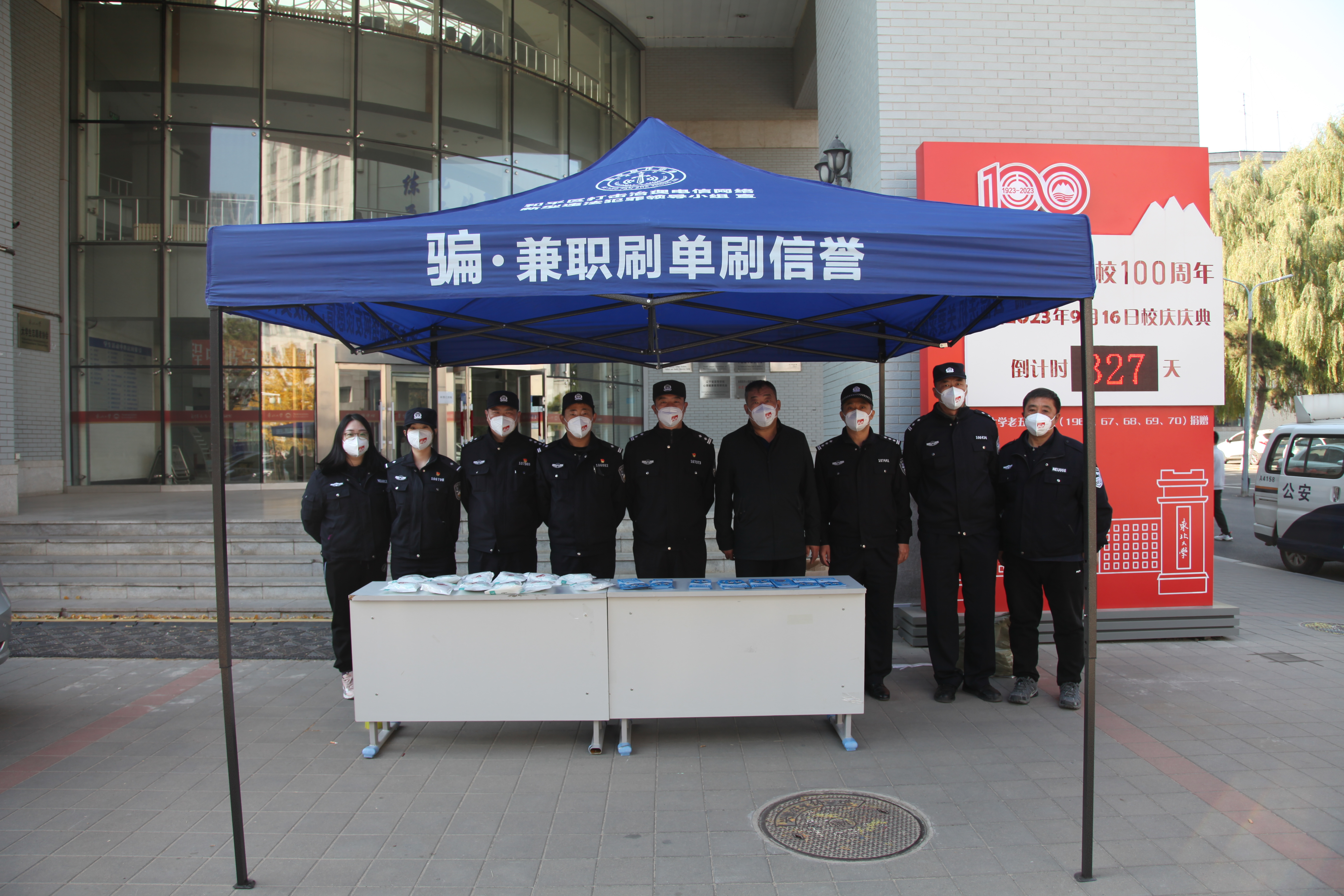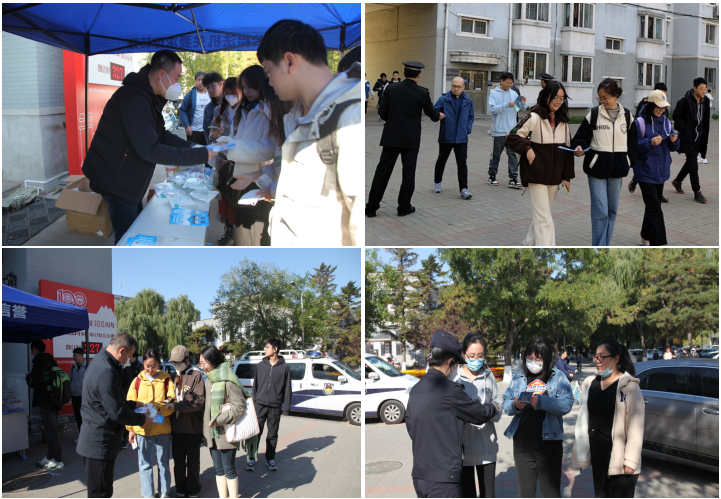 10月24日中午,公安处联合沈阳市公安局和平分局新型犯罪研究中心、南湖派出所在学校南湖校区共同开展防范电信网络诈骗宣传活动。沈阳市公安局和平分局新型犯罪研究中心主任王翀、南湖派出所所长张志勇,公安处副处长司会以及相关业务科室安保工作人员和民警共计20余人参与宣传活动。