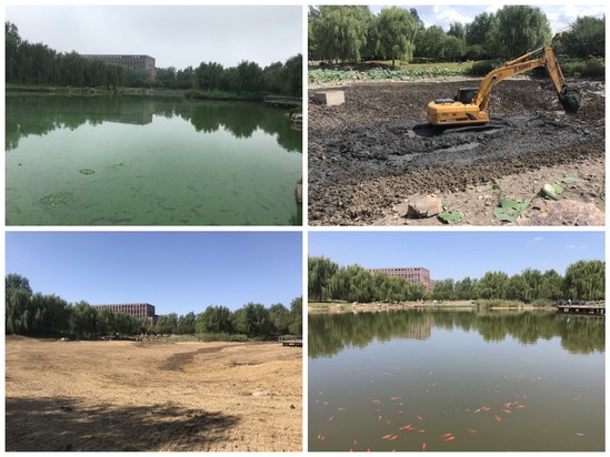 全力做好绿化养护管理工作,针对小南湖遭遇雨量激增且高温炙热,出现了水体富营养化、绿藻快速繁殖等威胁水域生态的问题,浑南校区管理委员会立即开展水域分区、鱼类迁移、湖底清淤、白灰杀菌、河石摊铺等治理工作,着力为师生展现新景观、新面貌。