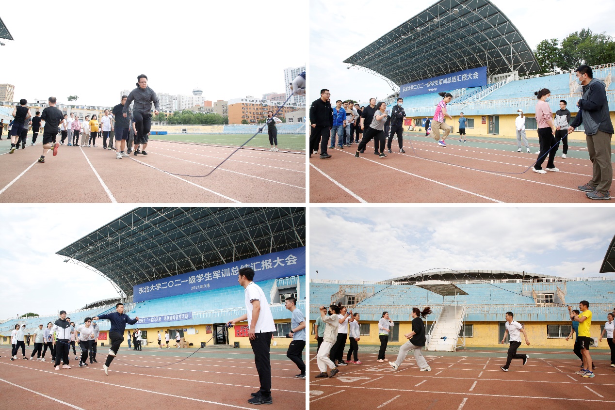5月28日清晨,驻校教职工“一起向未来”系列趣味体育活动之集体跳绳比赛在五四体育场举行。活动由东北大学工会和体育部联合举办,驻校部分教职工参加活动。