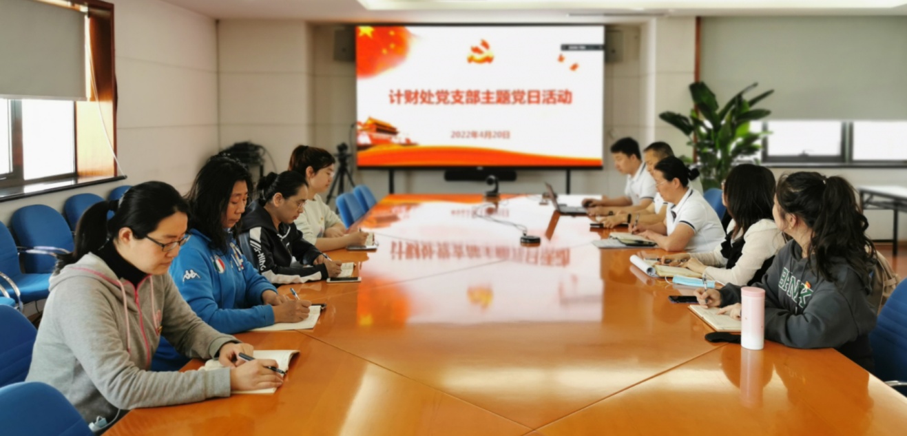 4月20日,计划财经处党支部举行主题党日活动。本次主题党日活动旨在进一步发挥党支部及全体党员在疫情防控工作中的战斗堡垒和先锋模范作用,凝心聚力、共克时艰,让党旗在防疫一线高高飘扬。会议以线上线下相结合的方式举行,南湖校区驻校党员在主楼1401会议室现场参会,其他党员以视频连线形式参加会议。会议由计划财经处副处长、党支部副书记孙宝宁主持。