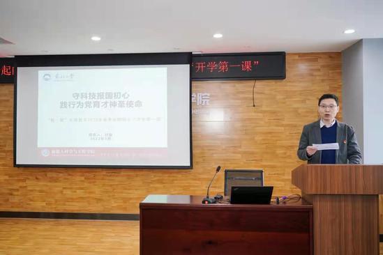3月7日下午,东北大学“一五一十”思政文化育人一体化平台之“名家讲坛”暨机器人学院2022年春季学期“开学第一课”报告会在浑南校区建筑学馆B302室举行。未来技术学院院长、机器人学院常务副院长付俊作报告,机器人学院全体师生参加会议。报告会采用线上线下相结合的方式,机器人学院副院长严志刚主持报告会。