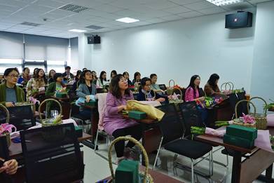 3月8日中午,计算机学院在浑南校区信息学馆B328室开展“春暖花开·致敬最美的你”花艺沙龙活动,学院党委书记邸馗参加活动,为女教职工们送上节日祝福。学院女教职工们欢聚一堂,“与花为伴”,共度美好的春日时光。