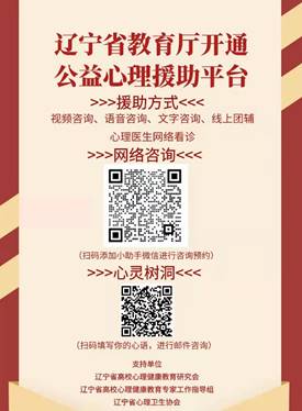 11月15日,“辽宁高校公益心理援助平台”开通并投入运行。为帮助省内高校尤其是大连地区高校师生加强心理防护,积极应对疫情,省委教育工委、辽宁省教育厅委托辽宁省高校心理健康教育研究会、高校学生心理健康教育专家工作指导组以及辽宁省心理卫生协会,组建了一支涵盖143名高校专兼职心理咨询师及31名心理科医生的专业资质齐备、业务过硬、危机干预经验丰富的心理志愿者服务团队,面向辽宁省内高校,优先服务受疫情影响严重地区的师生。
