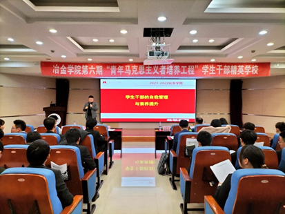 冶金学院第六期“青马工程”培训班班主任丁生荣向全体学员介绍了主要课程内容及考核办法。吕志娟为第六期培训班授旗。