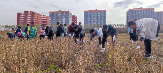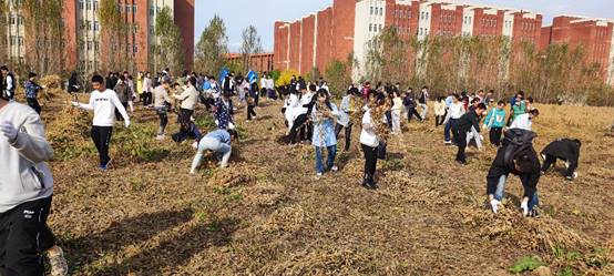 劳动教育实践活动在浑南校区开展,百余名学生在工人指导下完成百余亩毛豆地收割任务,体验劳动之美,共享劳动之乐,帮助同学们树立“实干兴邦”的劳动实践观、“崇尚劳动”的劳动价值观和“热爱劳动”的劳动教育观。