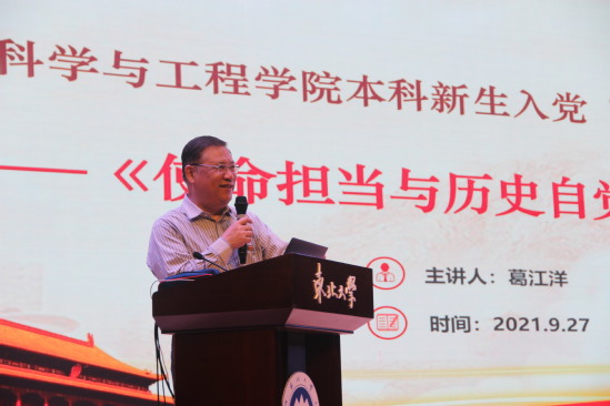 9月27日,计算机科学与工程学院在浑南校区图书馆报告厅举办了“使命担当与历史自觉”主题讲座。此次讲座邀请解放军退役大校、长征和国防文化学者、原解放军某师机关政治部主任葛江洋主讲。学院党委组织员、团委书记、本科生辅导员以及2021级本科生共计500余人参加了讲座。