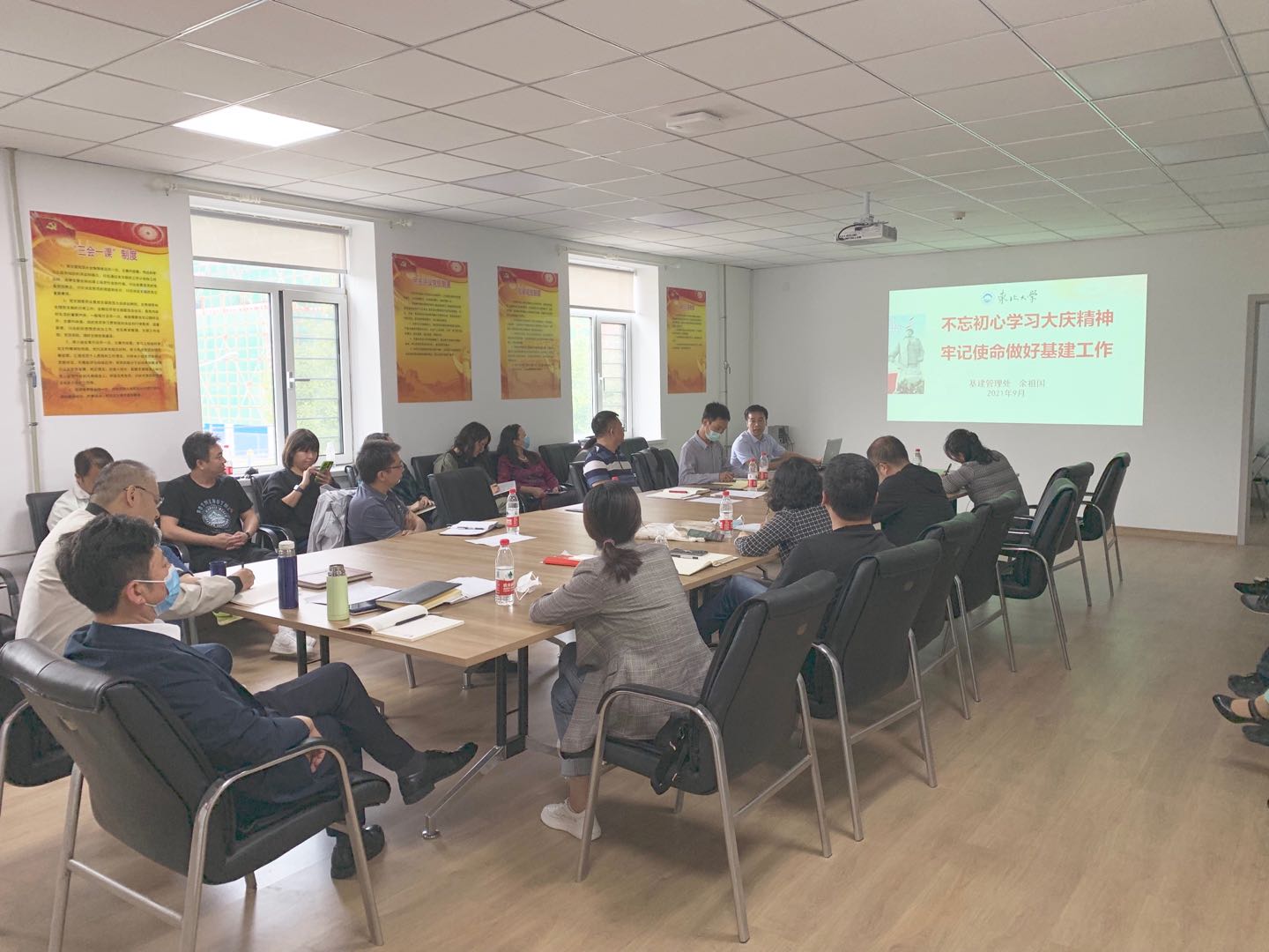 9月24日,基建管理处党支部在矿电楼会议室举行党史学习教育专题党课,会议由党支部书记李久存主持,基建管理处处长余祖国作题为“不忘初心学习大庆精神 牢记使命做好基建工作”的专题报告。