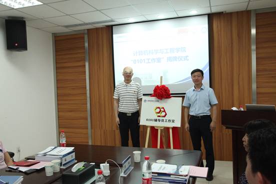 会议还进行了学院“0101工作室”成立仪式。学院“0101工作室”是以习近平新时代中国特色社会主义思想为指导,以“学科优势,人才培养,思政尖兵,下沉一线”为主题,旨在充分认识计算机工科本硕博学生群体的思想行为特点及成长发展规律的基础上,设计更具有针对性、实操性和可评价性的思想政治教育工作项目,主要职能包括辅导员工作项目化统筹和运营、学院二级心理咨询站建设、谈心谈话督导、辅导员德育科研专项等。工作室聘请马克思主义学院副院长任鹏担任思政理论专家顾问。马天威与聂国东为工作室揭牌。